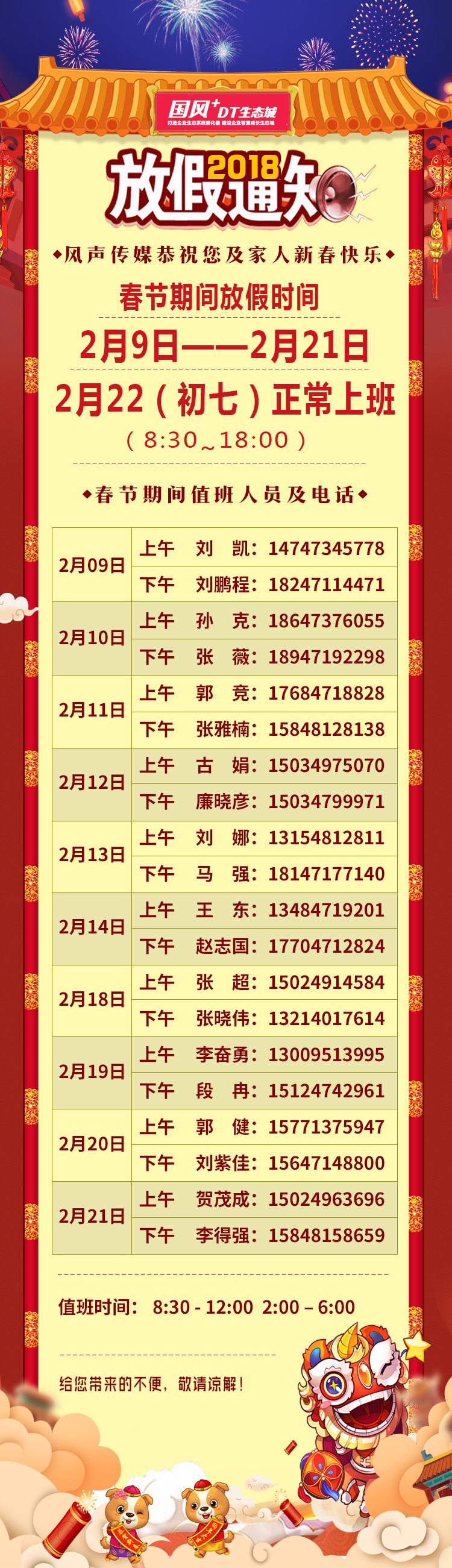 風(fēng)聲傳媒2018年春節(jié)放假通知